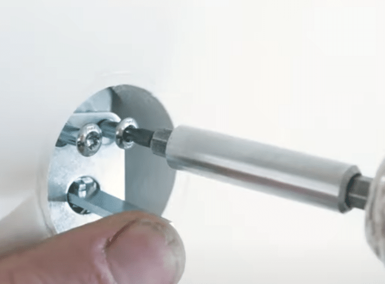 Herunder kan du se hvordan man isætter en ny cylinder hvis det er nødvendigt. Men du kan også se hvilke to skruer du skal spænde, inde bag vrideren. spændes de vil cylinderen sidde fast igen.