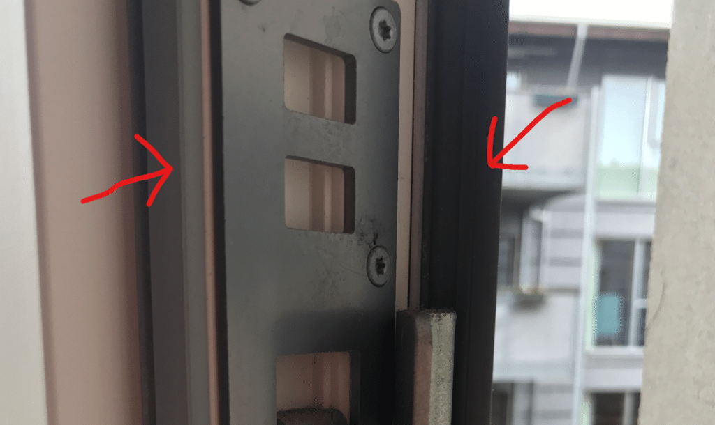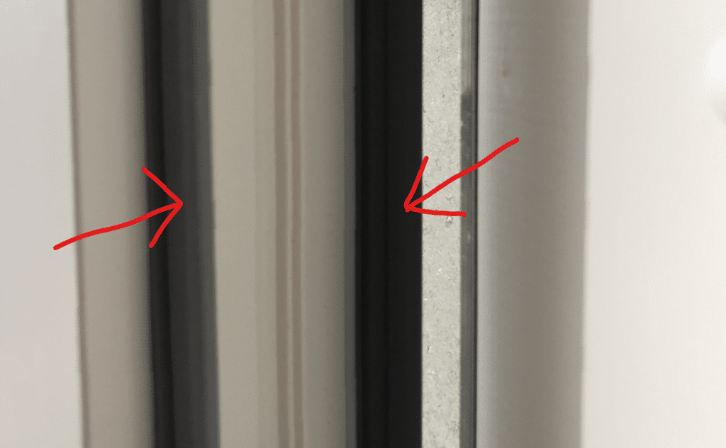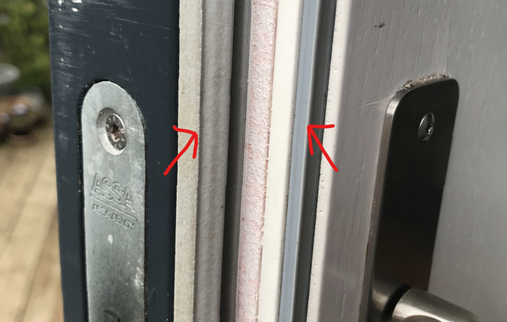 På nogle døre er der kun de to som vist på billedet, på andre døre er der også en sort gummiliste. Hurtig spray, så der ikke kommer for meget på som skal tørres af.