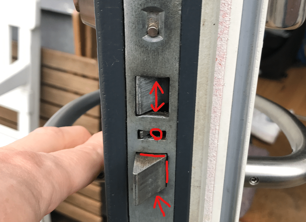 • Hvis låsecylinderen er lidt løs, skal den spændes. Tag fat i den del som du stikker nøglen ind i, kan den bevæge sig, skal den spændes fast. Ellers risikerer du at du en dag ikke kan åbne døren.